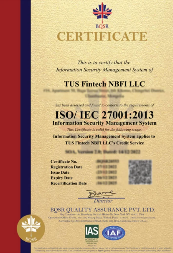 ISO/IEC 27001:2022 сертификат нь мэдээллийн аюулгүй байдлыг удирдах систем (ISMS)-ийн олон улсын стандартын дагуу байгууллагуудын мэдээллийн аюулгүй байдалд тавигдах шаардлагыг хангаж буйг баталгаажуулдаг гэрчилгээ юм. Энэ стандарт нь мэдээллийн аюулгүй байдлыг хамгаалах, хулгай, алдсан болон мэдээллийн алдагдлын эрсдлийг бууруулахад чиглэгдсэн удирдлагын системийг байгуулахад тусалдаг.